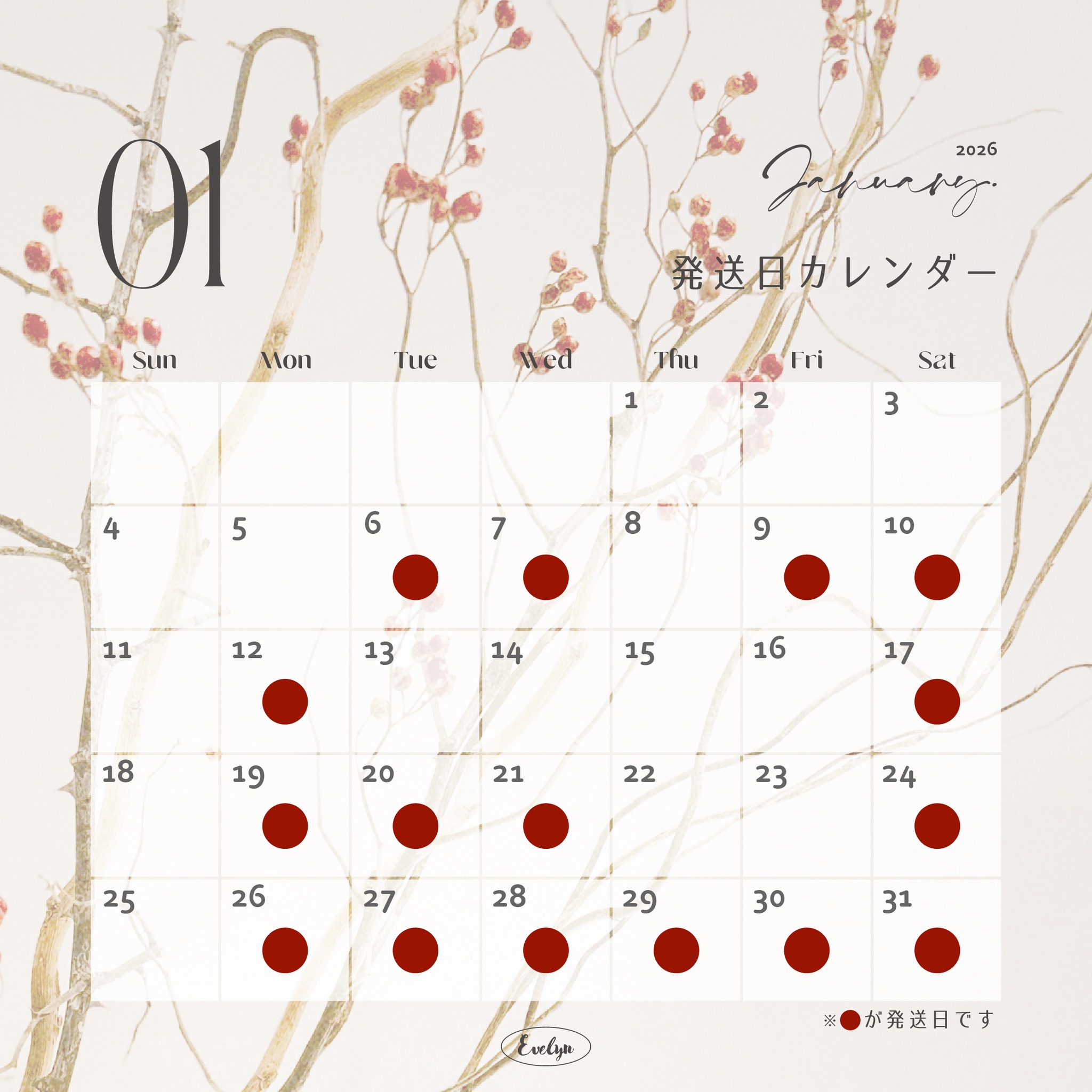 2026年 ⸜ 1月 ⸝ 発送日のお知らせです ¨̮