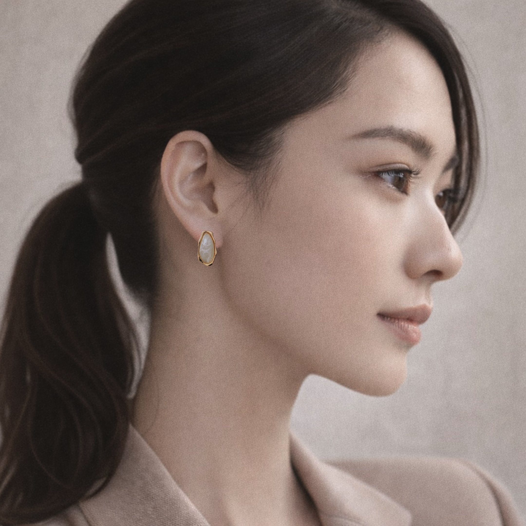 自然なフォルムと静かな光を宿したピアスです