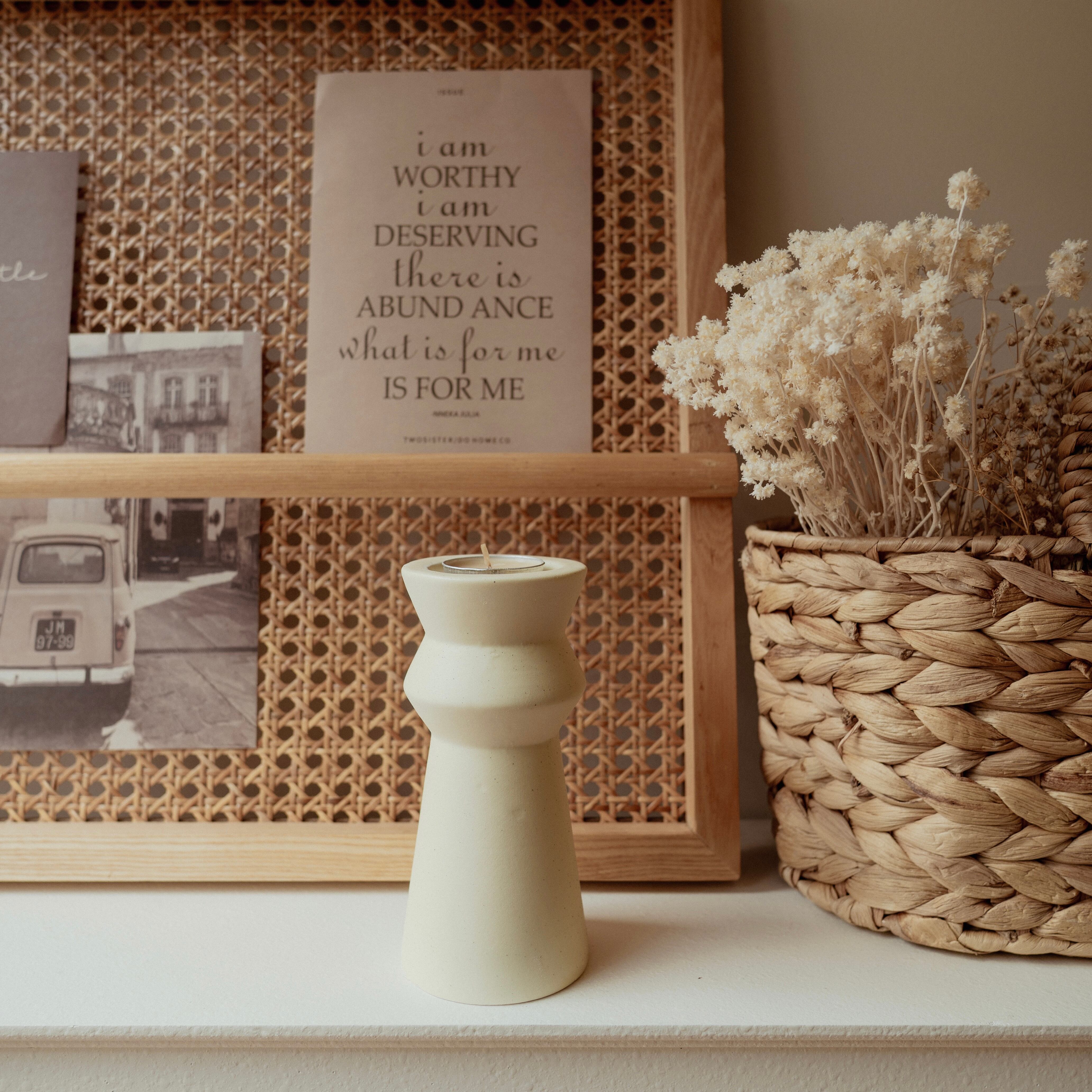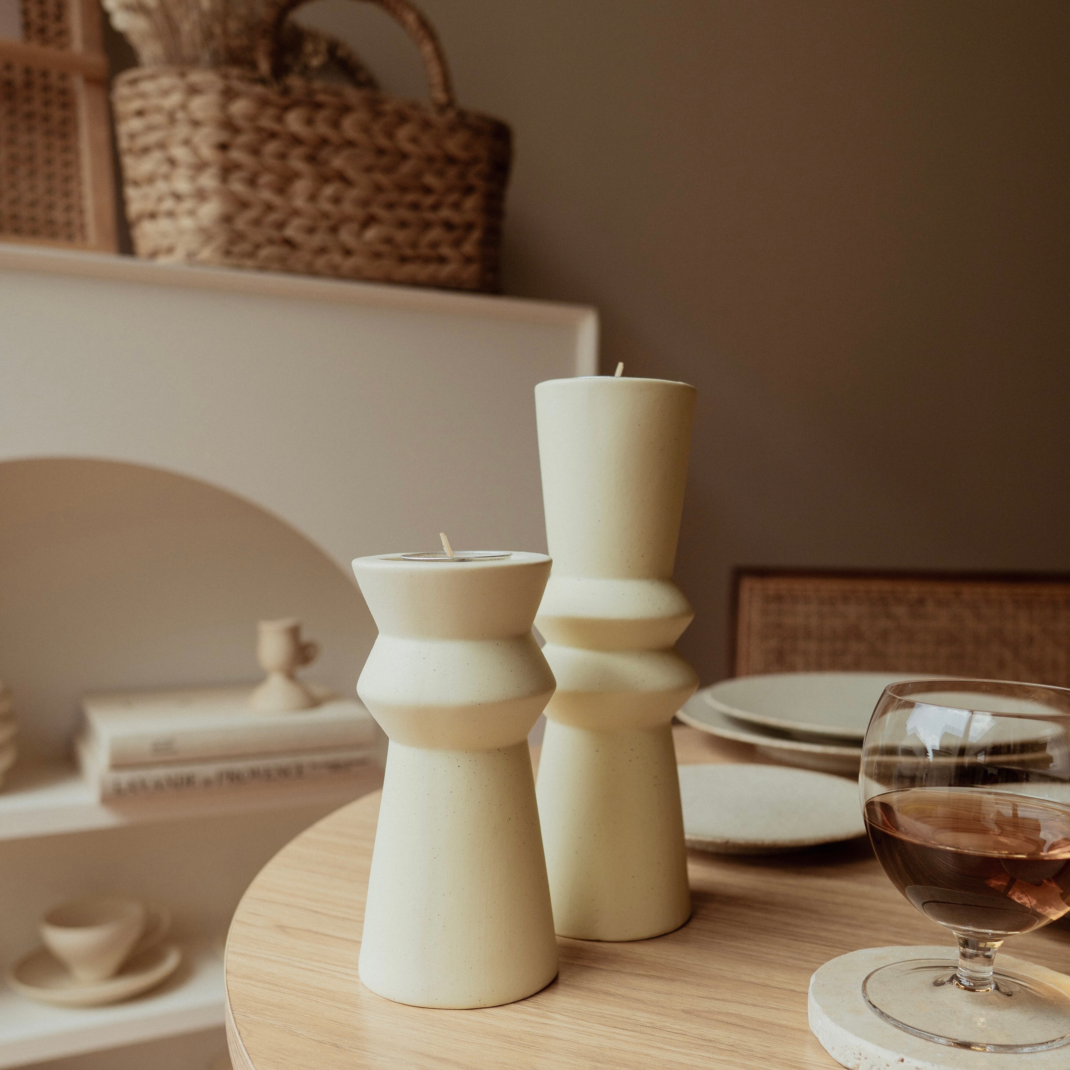 まるで建築物のように彫刻的なフォルムが印象的なキャンドルスタンドです