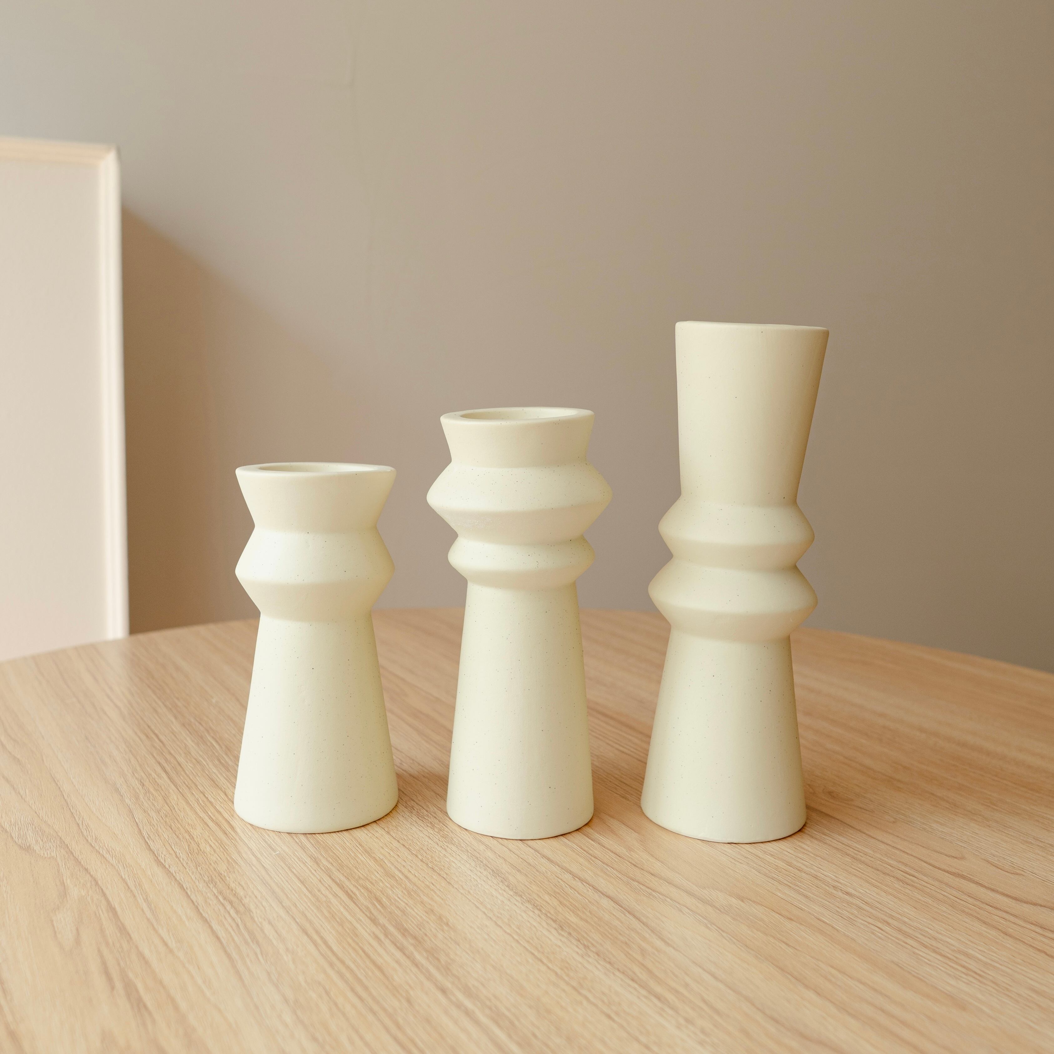 まるで建築物のように彫刻的なフォルムが印象的なキャンドルスタンドです
