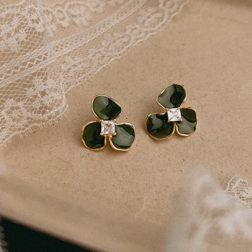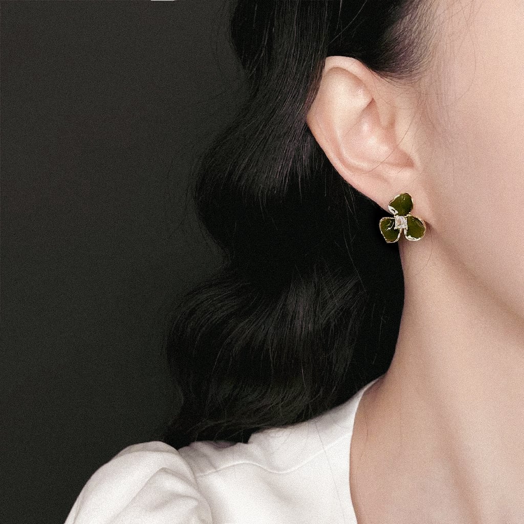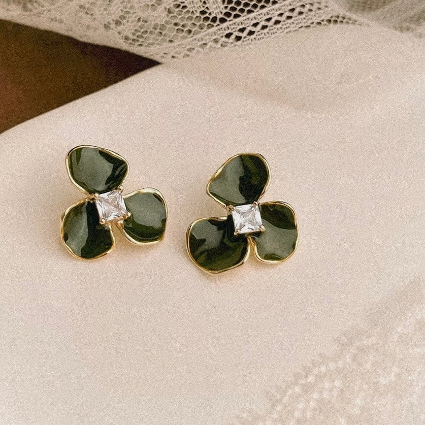 ゴールドの縁取りとクリアストーンが美しく映えるピアス