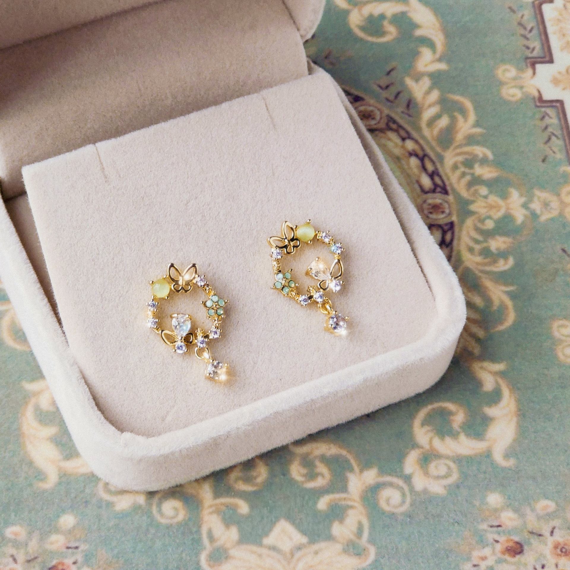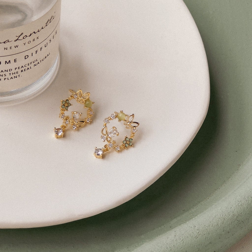 淡いグリーンとクリアストーンが織りなす穏やかな輝きが、