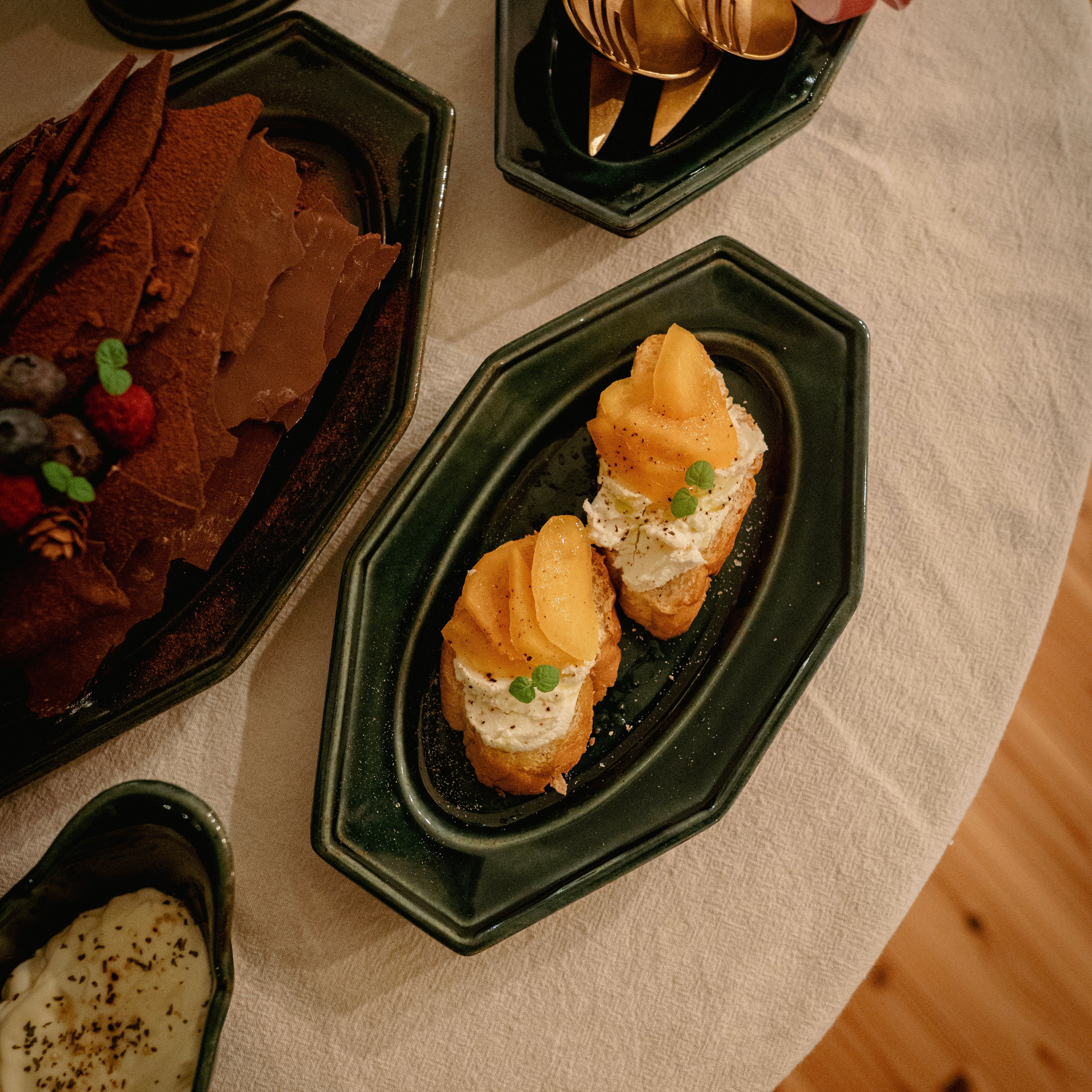 海外のショーケースに並んだデリカテッセンを盛り付けるイメージでデザインされました
