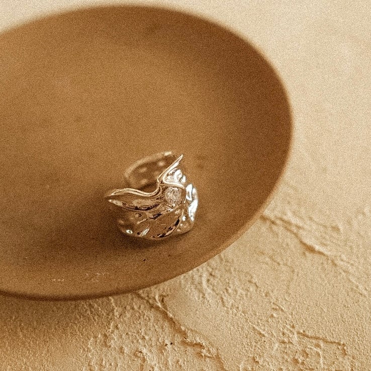 内側にはひと粒のストーンを忍ばせたさりげないディテールがあり、