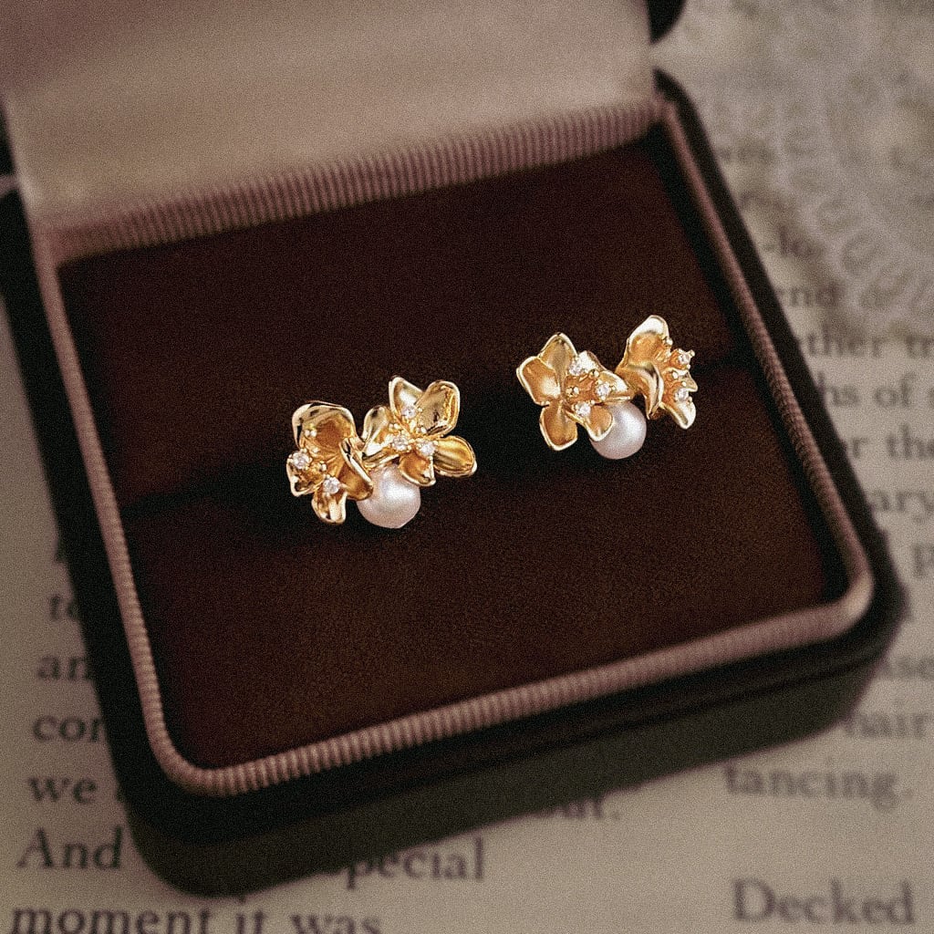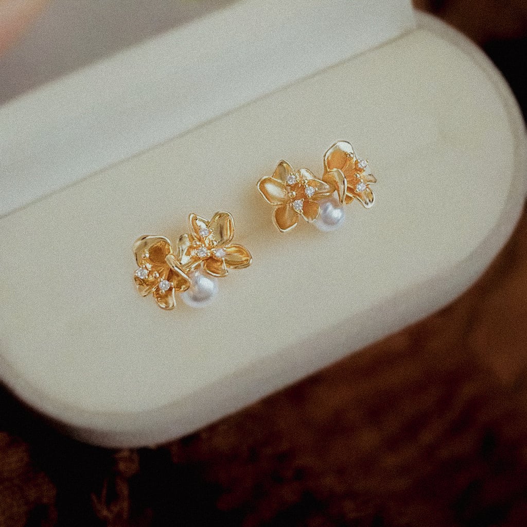 やわらかく輝くパールを添えたピアス
