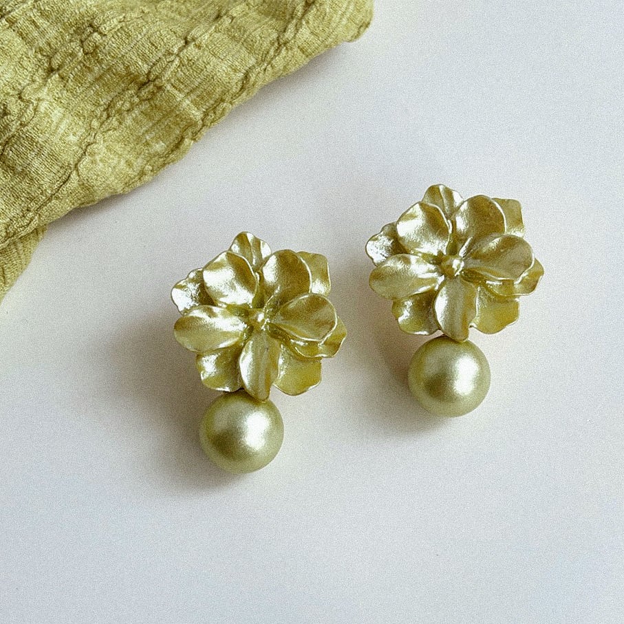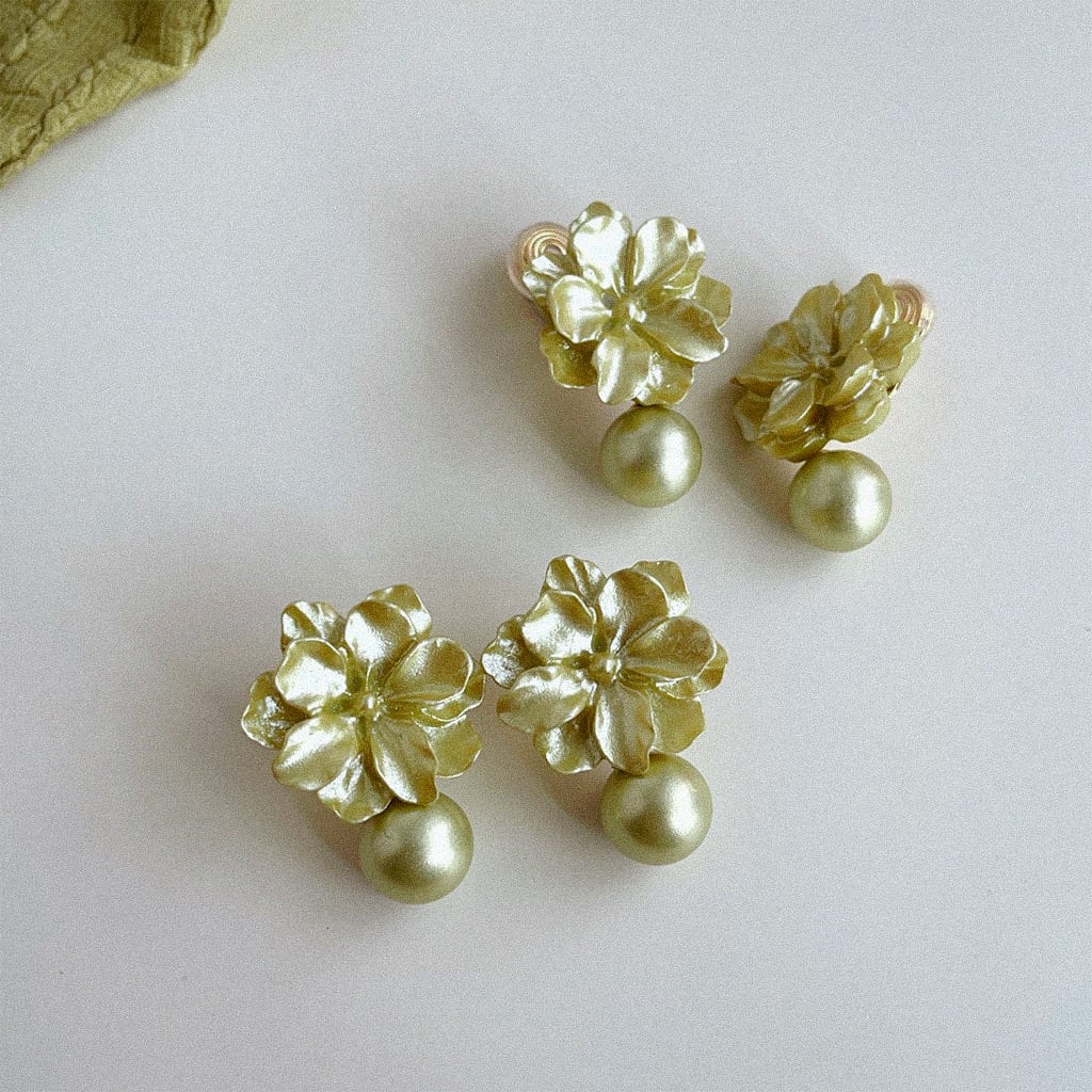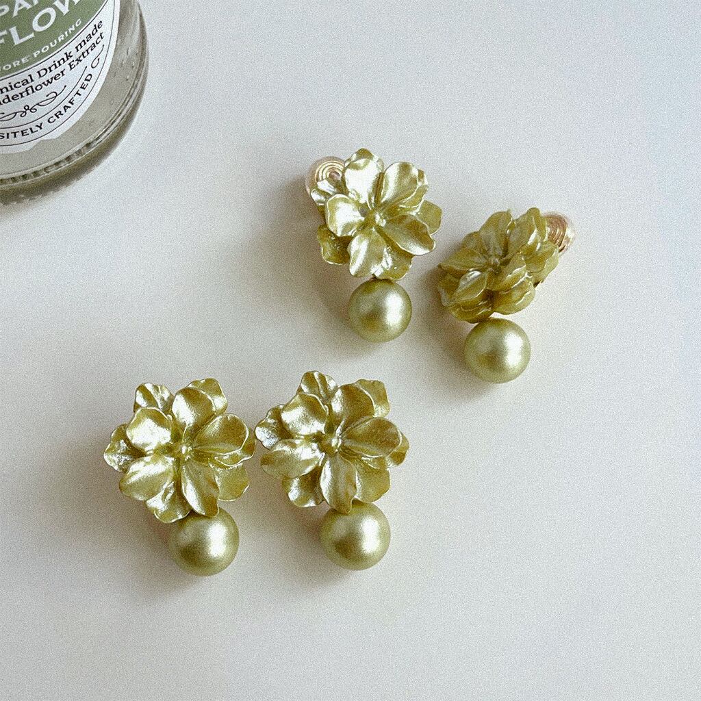 オリーブカラーのパールを添えた上品なピアス/イヤリング