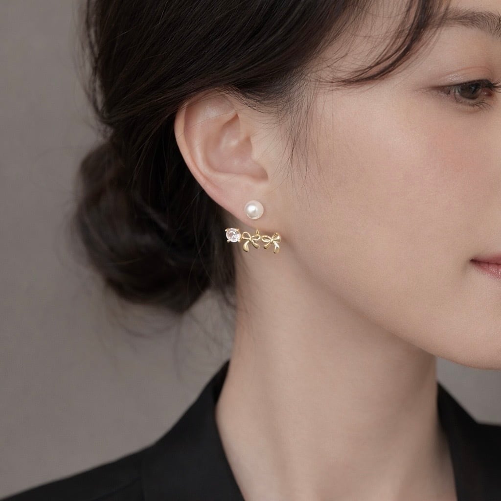 リボンチャームを外して パール単体のピアス としてもお使いいただけます