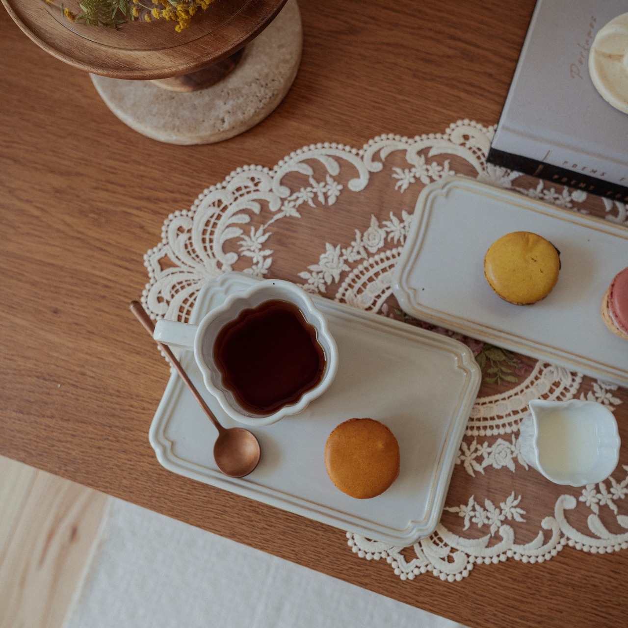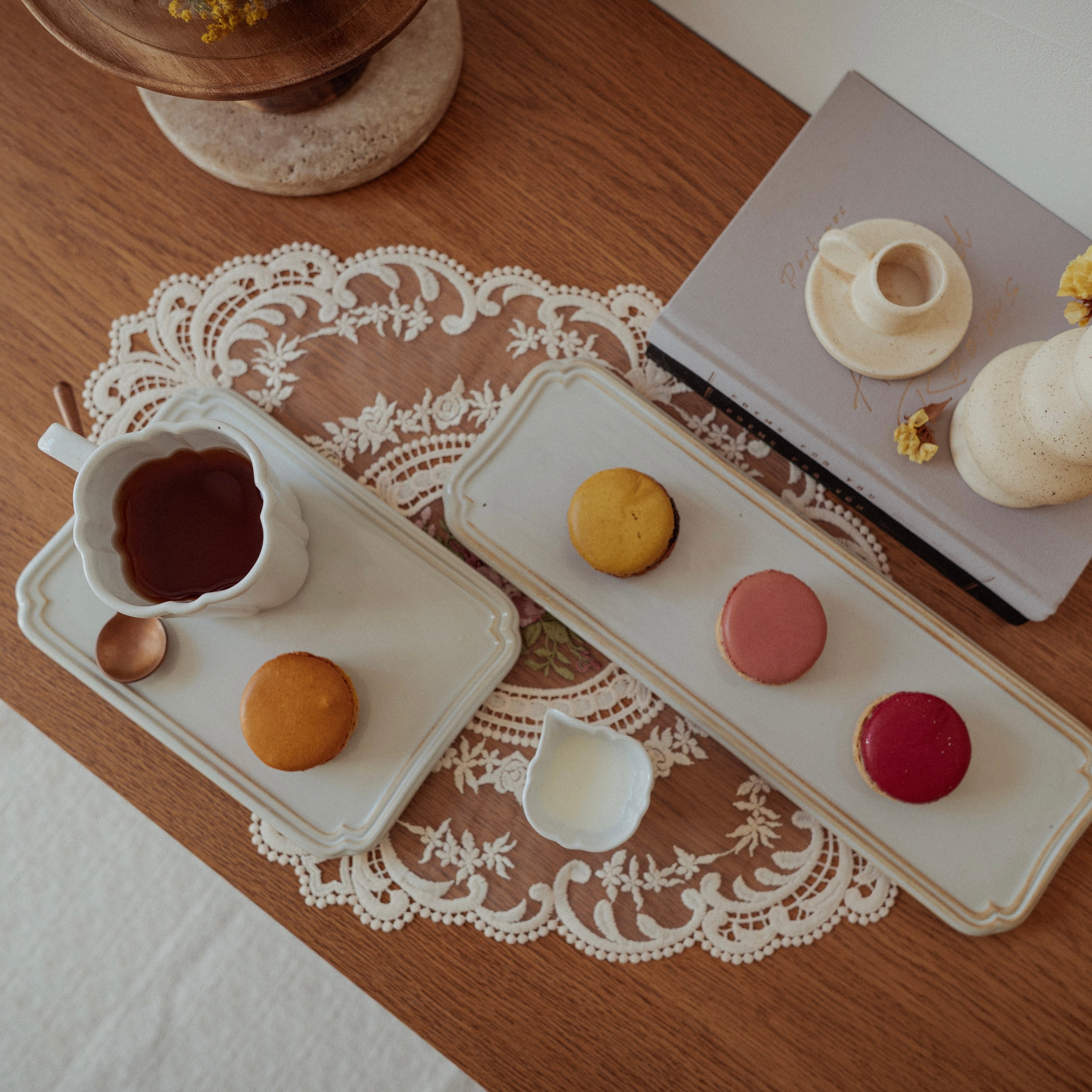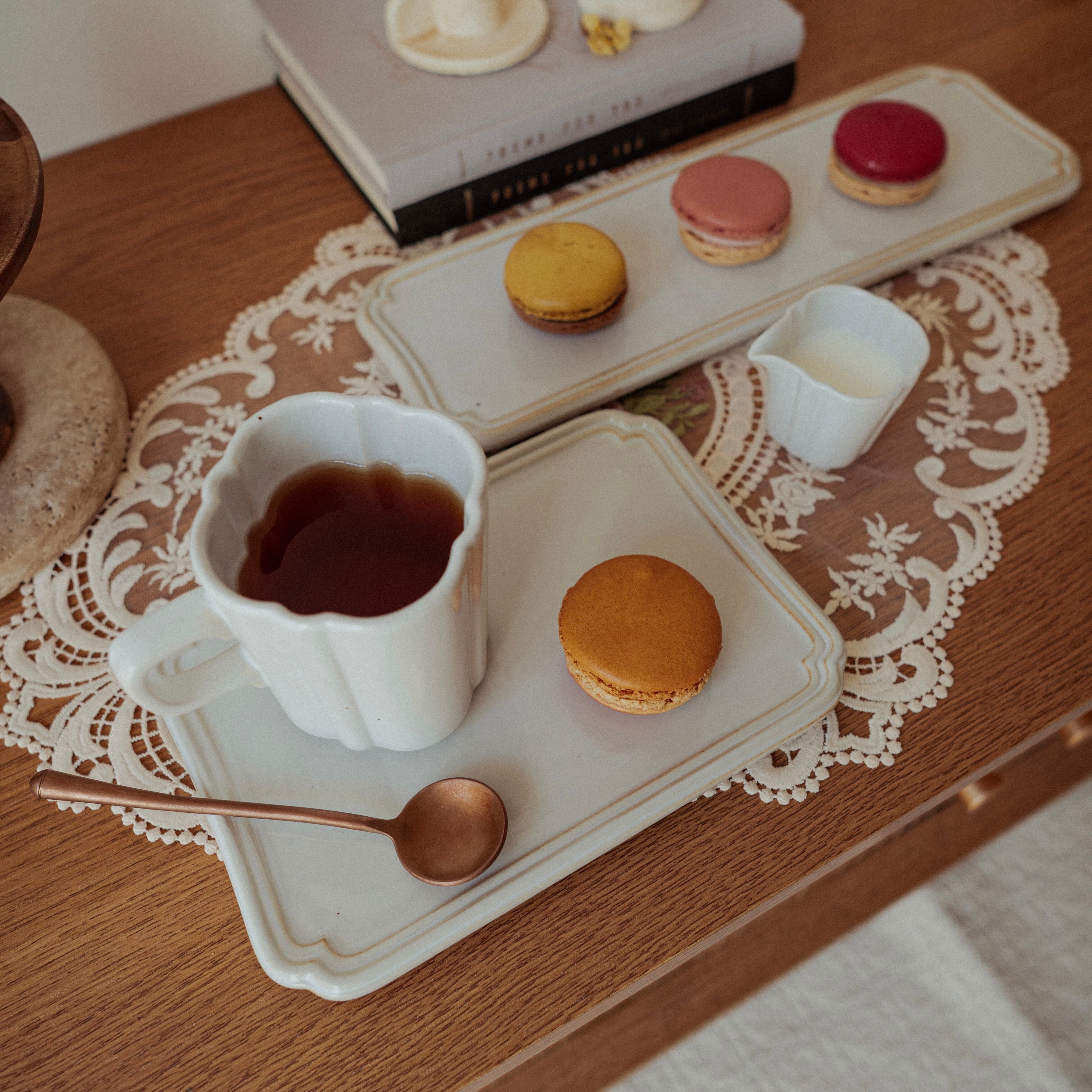 ティータイムにケーキや焼き菓子をのせたり、