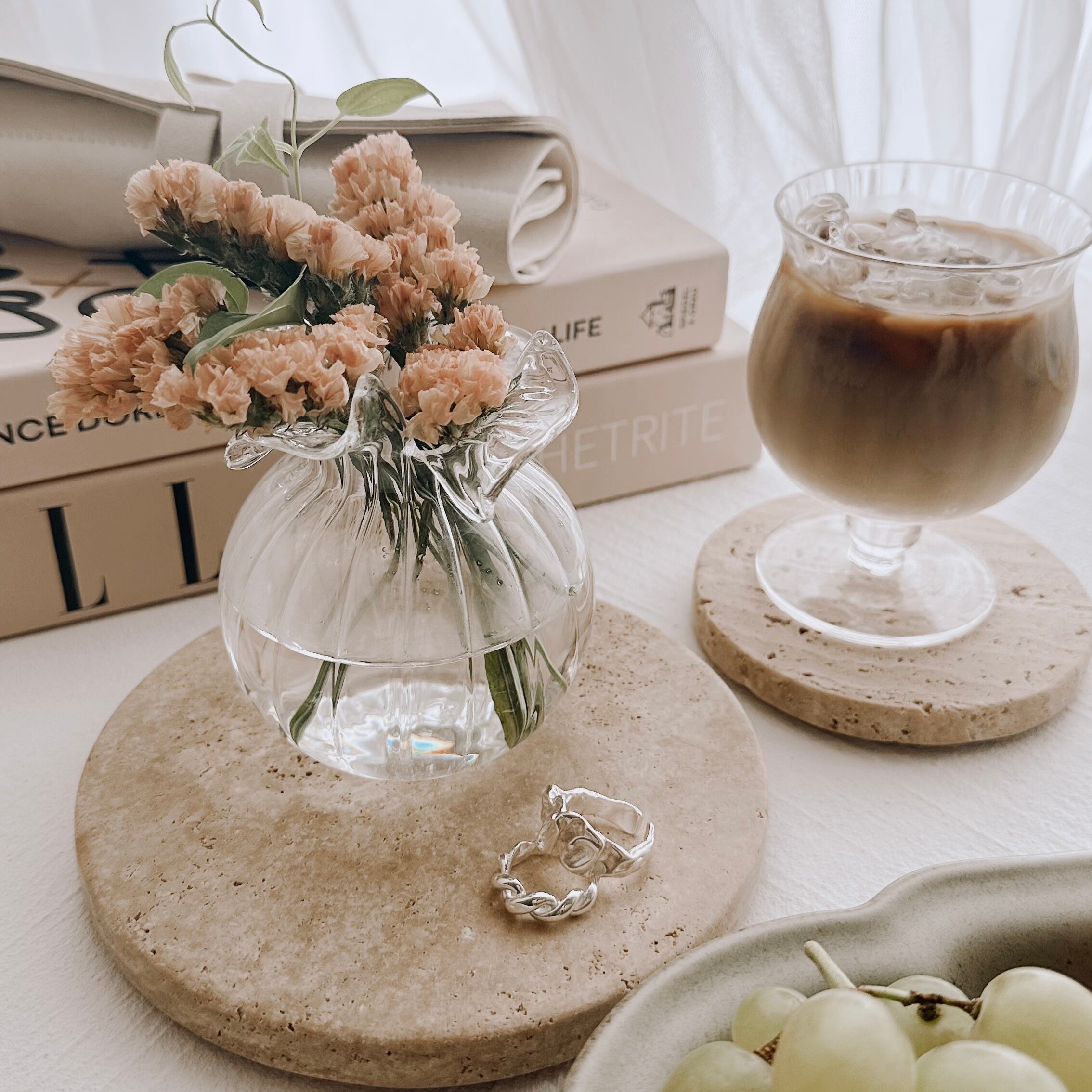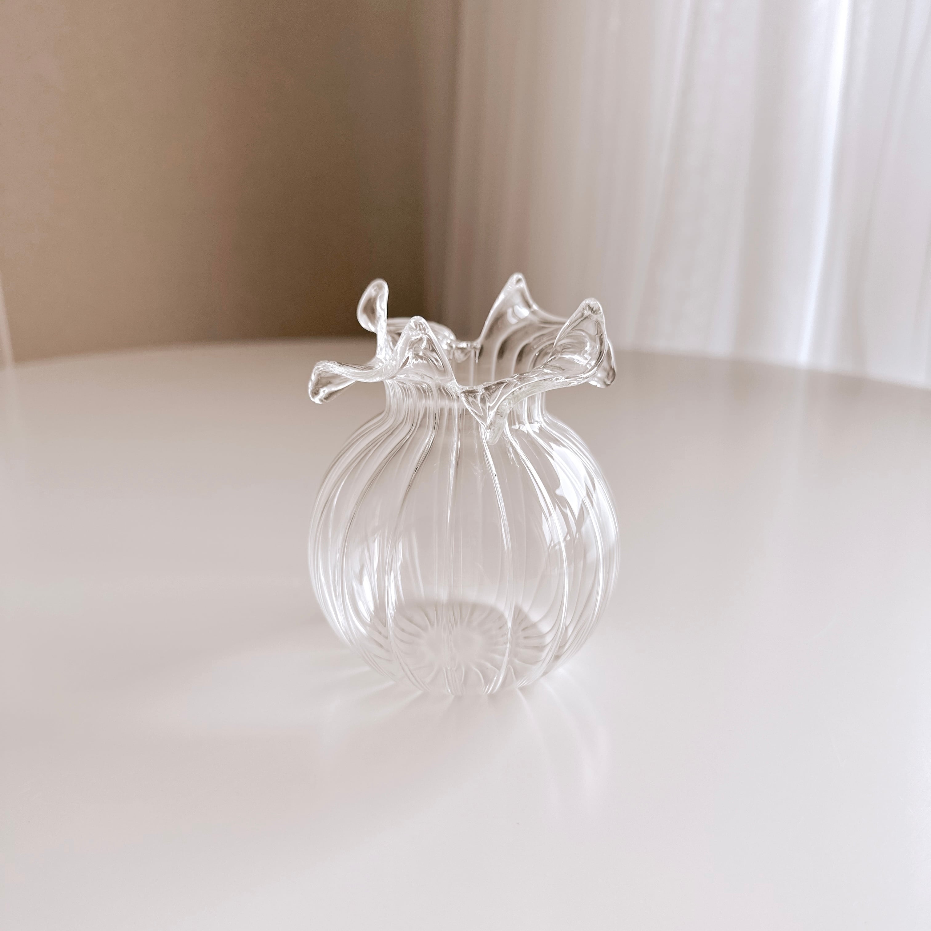 ガラス素材でシンプルながらも華やかさを演出するフリルのデザインは、