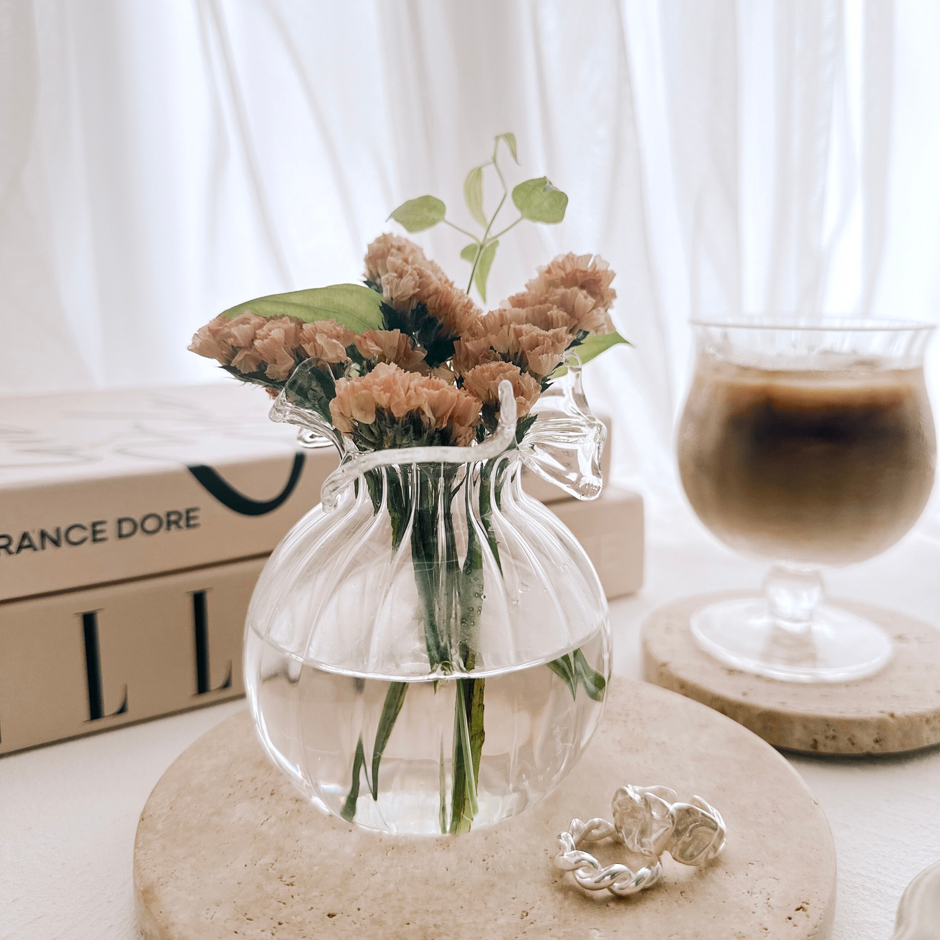 小さなお花でも可愛く飾ることができるフリルミニベースです。